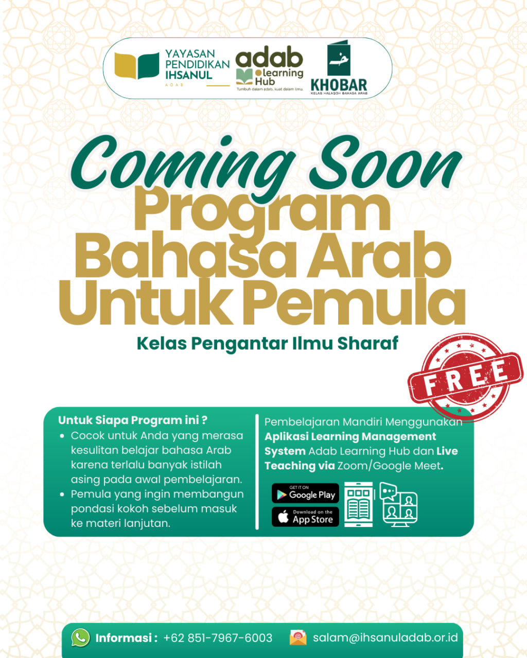 Kami hadir untuk menjawab keresahan itu: menghadirkan pendidikan yang berakar dari tauhid, berjiwa adab, dan menghasilkan amal nyata.