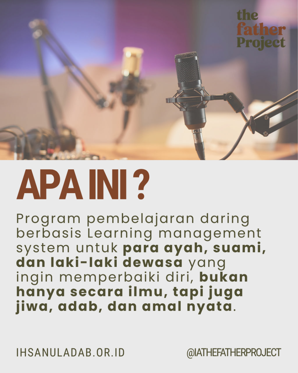 πŸ“– The Father Project adalah program pembelajaran daring selama 2 semester untuk para ayah dan laki-laki dewasa yang ingin memperbaiki diri secara ilmu, jiwa, dan amal nyata.